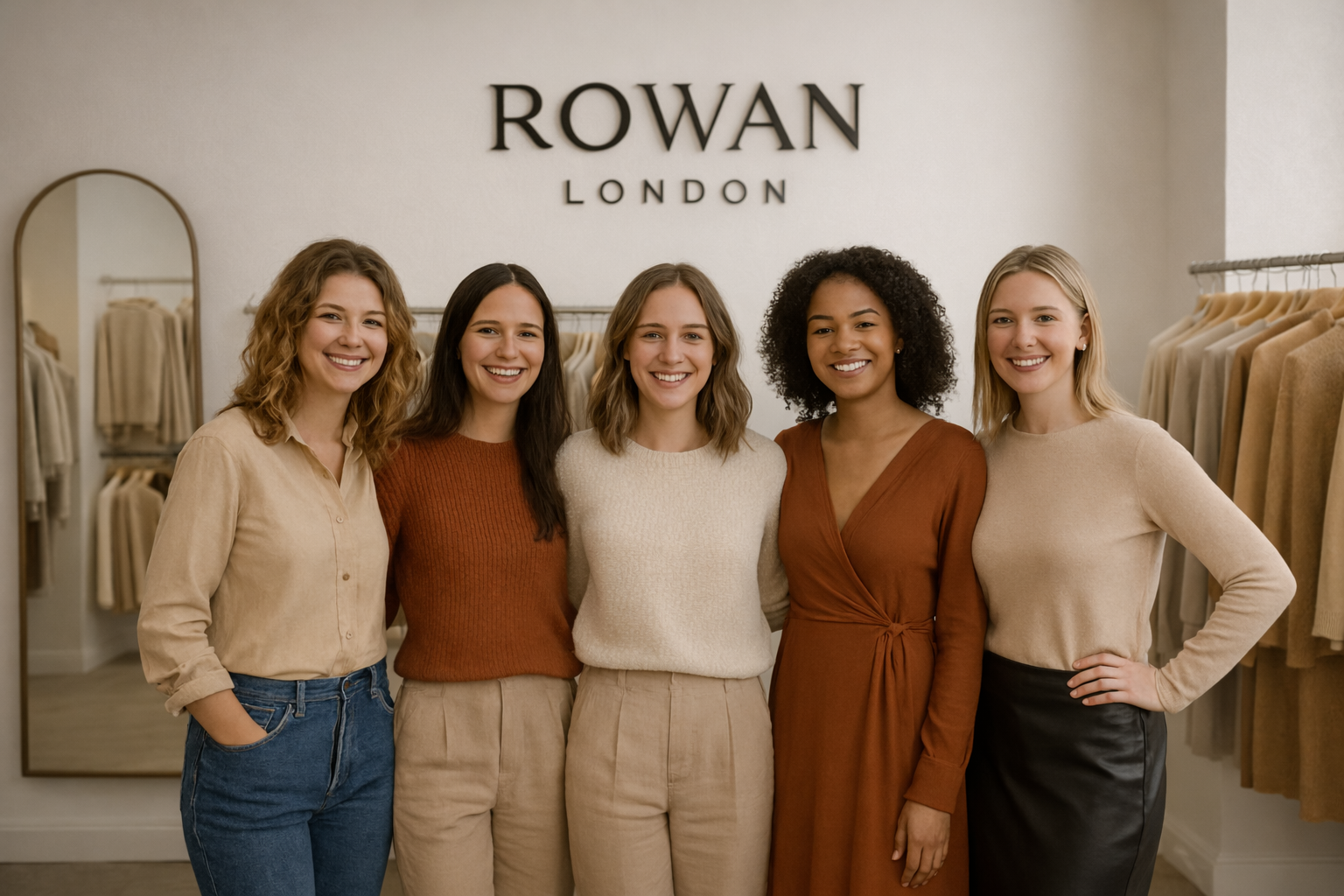 At Rowan London, everything begins with intention. Together with Amelia, Charlotte, Naomi, and Sophia, I create timeless fashion rooted in craftsmanship, fit, and confidence.